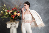 Yes, that is raw silk. Yes, those are crystal beetles. Yes, those are ostrich feathers. YES, THOSE ARE HAND-EMBELLISHED DIAMANTÉ STRAPS!!!
