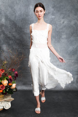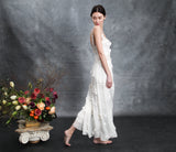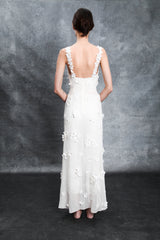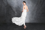 Raw silk, a dramatic figure-hugging silhouette, modern lines & fairytale accents? It’s no wonder our Grace gown was inspired by Grace Kelly. Dozens of hand-dyed silk blooms adorn this sumptuous gown, not to mention glimmering diamantés which tastefully stud the entirety. (And that neckline! Your collarbones will thank you.)