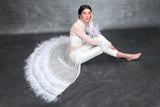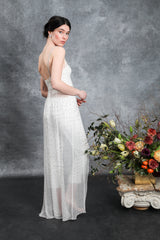 100% pure eighty gram raw silk. Each piece has been hand embellished and handcrafted for especially for you. Please care for with love and dry clean only.